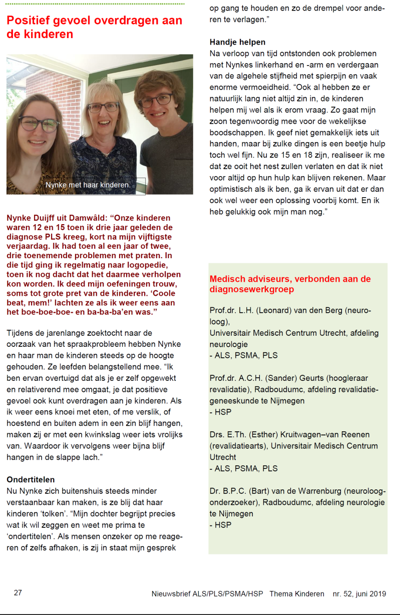 In Nieuwsbrief ALS, PLS, PSMA, HSP, juni 2019