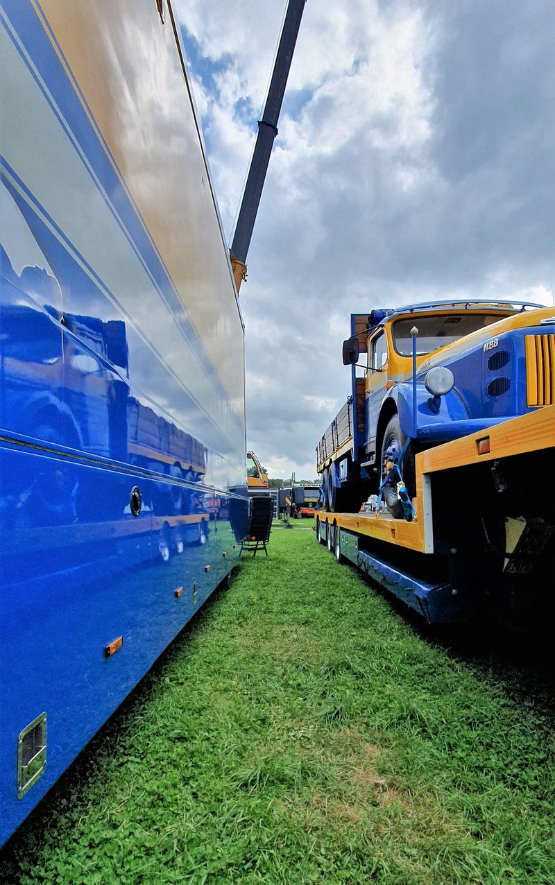 T en F stellen hun lieftallige Ford vrachtauto uit 1970 hier op een retrotruckfestijn ten toon. Zoon en ik zijn op bezoek. Geheel in stijl zijn we met mijn eigen ouwe trouwe kevertje van 1962 gekomen, waarin ik de laatste jaren slechts nog bijrijder ben. Na een wandel-rol-rondje langs al het glanzende en reusachtige plaatstaal waarnaast de rolstoel en ik in het niet vallen, laat Zoon me even achter om samen met T een fraaie DAF aan een nadere inspectie te onderwerpen.