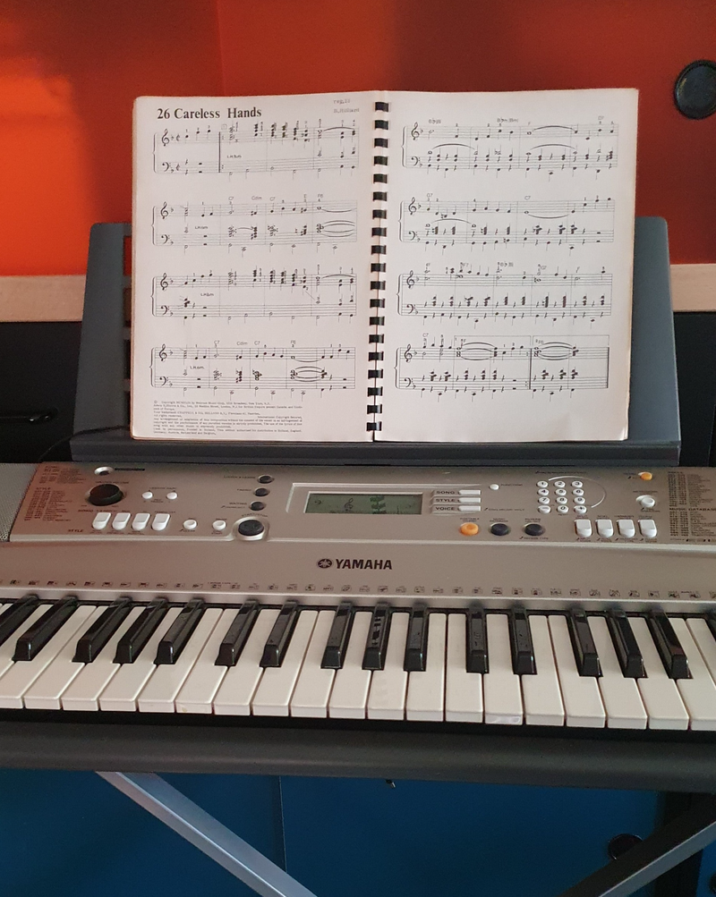 Ooit speelde ik orgel: evergreens, musicals, popmuziek, rockklassiekers, dat soort. Sinds mijn orgel letterlijk in rook op ging, bleef de piano over. Omdat mijn handfunctie al afnam, durfde ik het toen, jaren geleden al, niet meer te proberen. Na het overlijden van mijn moeder kwam haar keyboard in mijn bezit. Na er drie maanden alleen maar naar gekeken te hebben, ga ik het nu toch héél voorzichtig proberen.