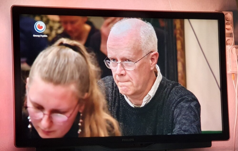 Oud-collega M. brengt me nog een glas water, precies zoals ze voorheen ook deed als ik in de statenzaal zat te notuleren. Nostalgisch momentje. Iedereen zoekt een plek, de televisiecamera’s van de regionale omroep worden in stelling gebracht, de juryleden worden geschminkt en gestyled en dan opent de presentatrice van Omrop Fryslân de dicteeavond, met aan haar zijde voormalig televisieweerman en klimaatdeskundige Gerrit Hiemstra en juryvoorzitter Hindrik Sijens.