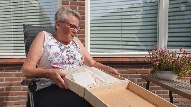 Zo ging ik de afgelopen weken maar liefst twee keer wandelen in de mooie Drentse gemeente Westerveld. Met G de heide op, wat resulteerde in driehonderd paarse foto's waar ik nog niks mee gedaan heb. En met nicht A en onze gemeenschappelijke tante D door de proefkolonie Frederiksoord-Wilhelminaoord, waarbij tante over onvermoede gidstalenten bleek te beschikken én over een oude koffer vol familiegeheimen die de nodige herinneringen boven tafel brachten. Tweehonderd foto's.